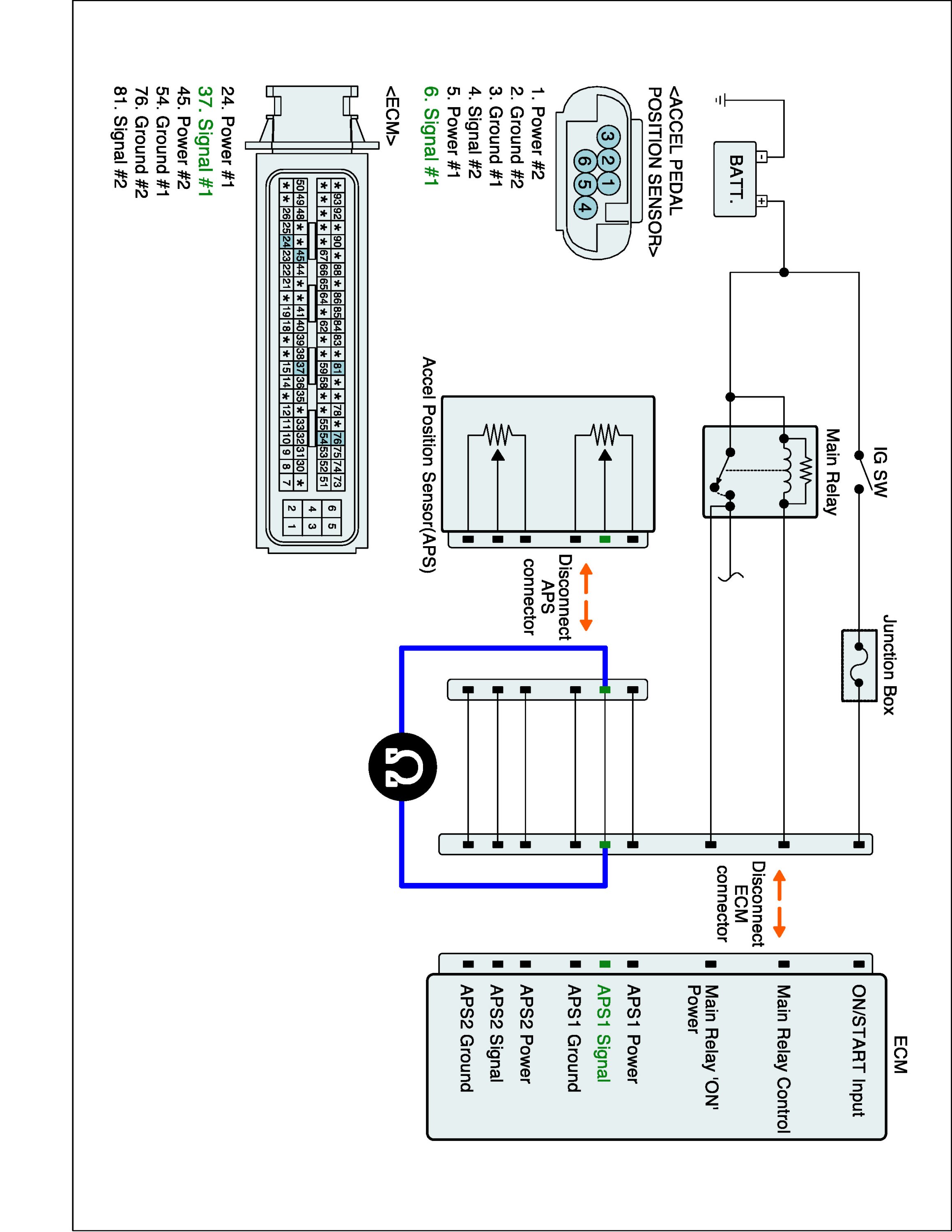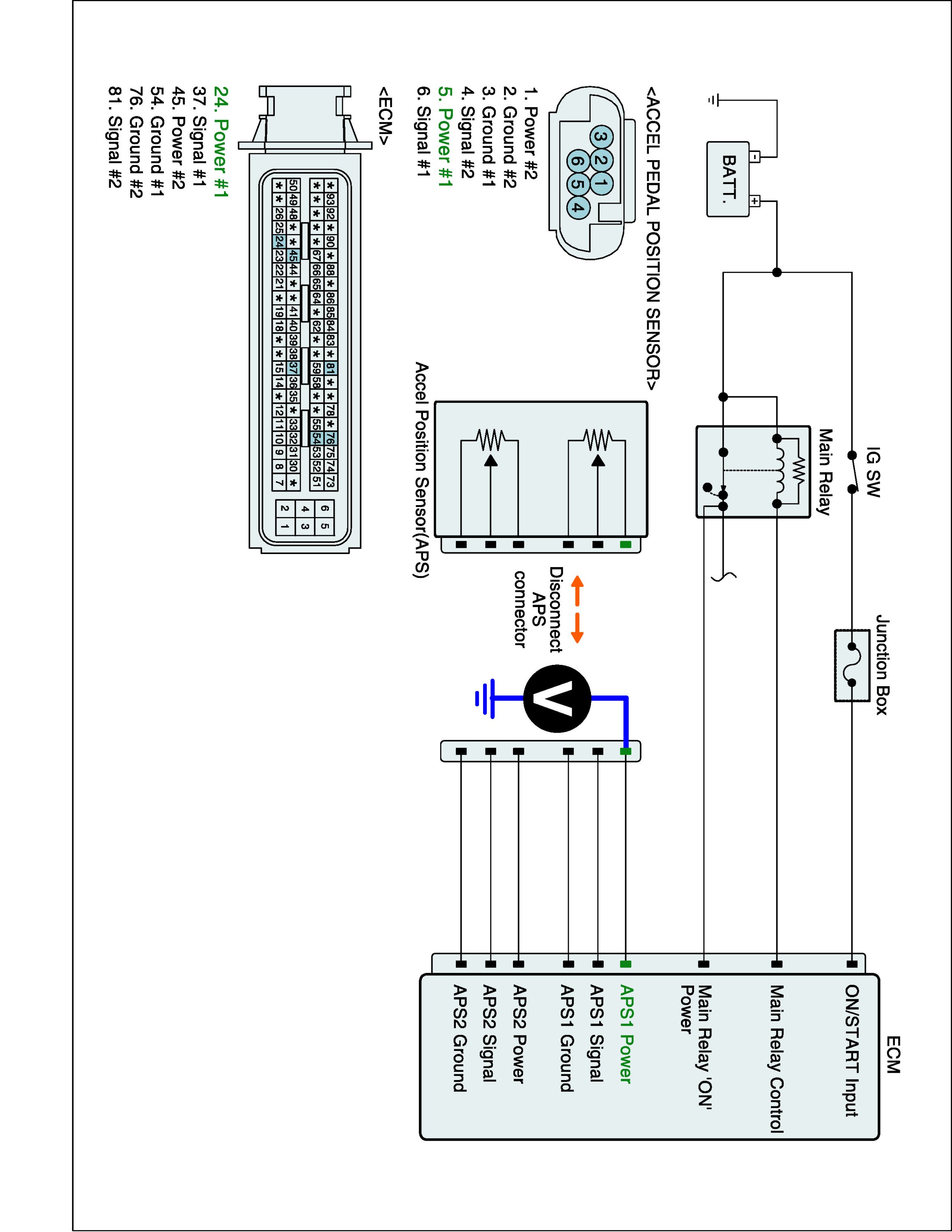 1. IG "OFF" and disconnect APS connector and ECM connector.