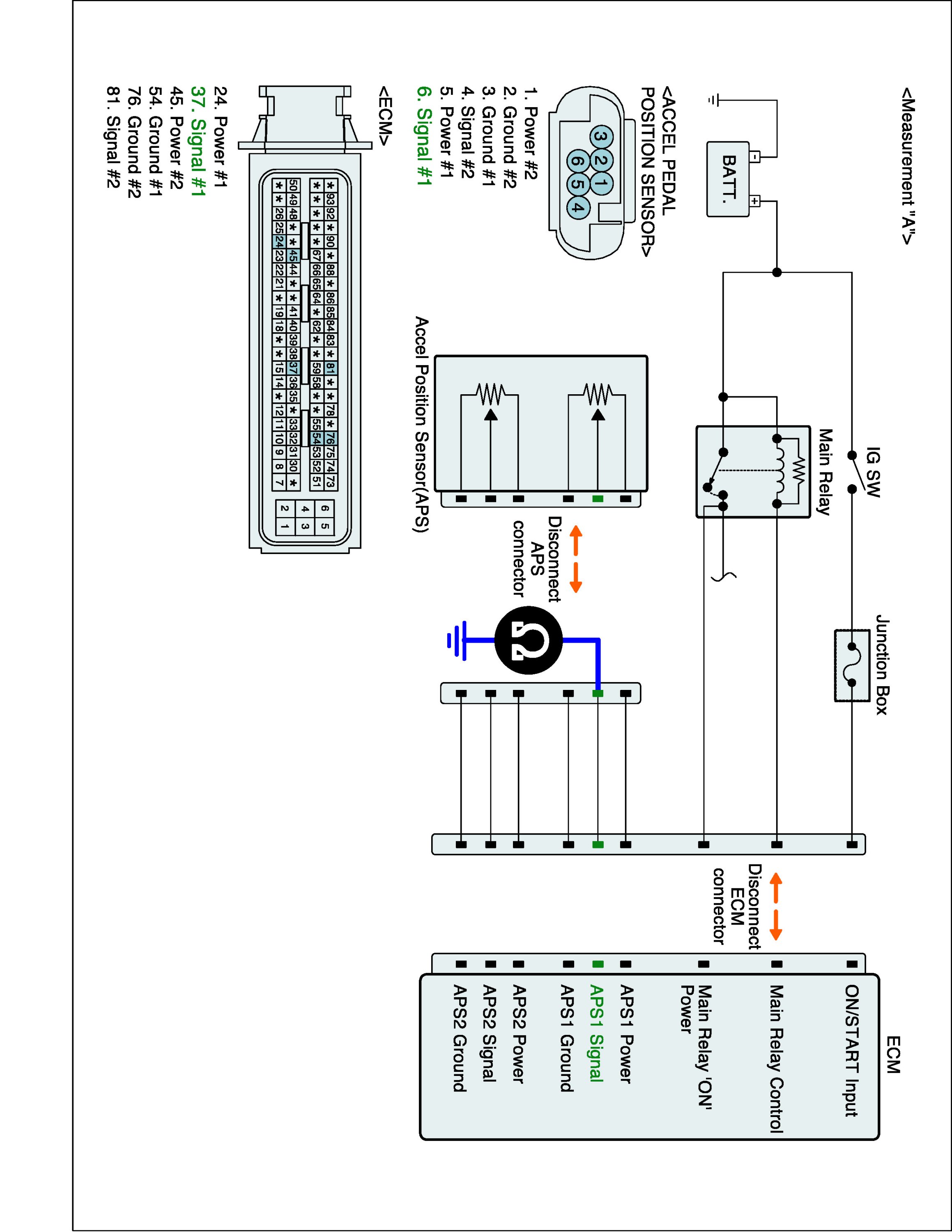4. Measure resistance between APS 1 signal and APS 1 (2) ground terminals of APS harness connector. (Measurement "B")