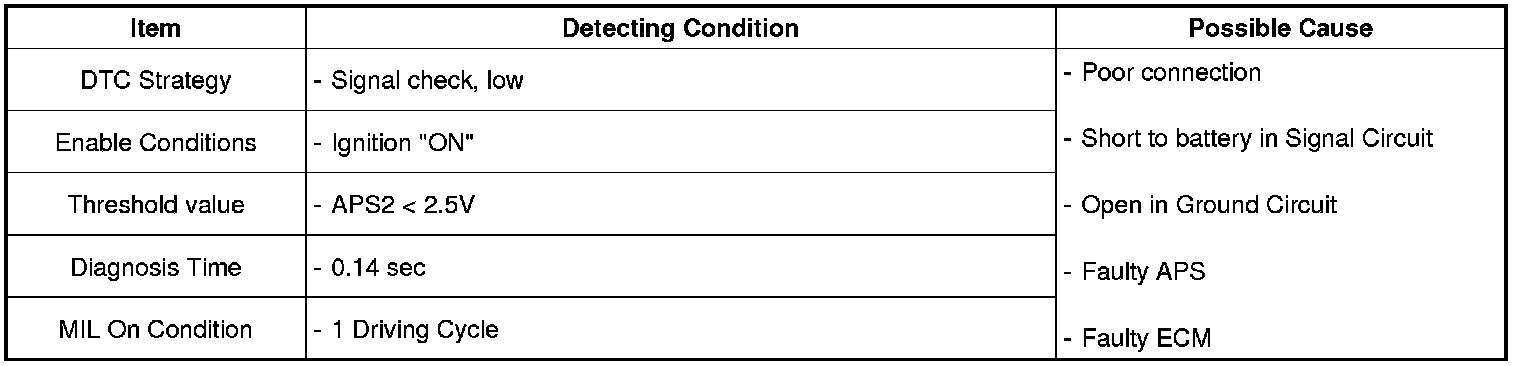 Checking output signals from APS 2 under detecting condition, if output signals are above the threshold, ECM sets P2128.