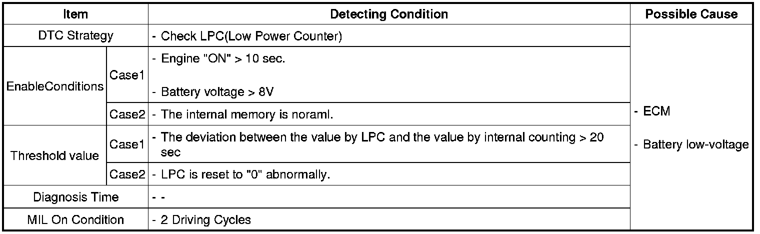 If The deviation between the value by LPC and the value by internal counting is over 20 sec or ECM detects an error on internal memory, ECM sets P2610.