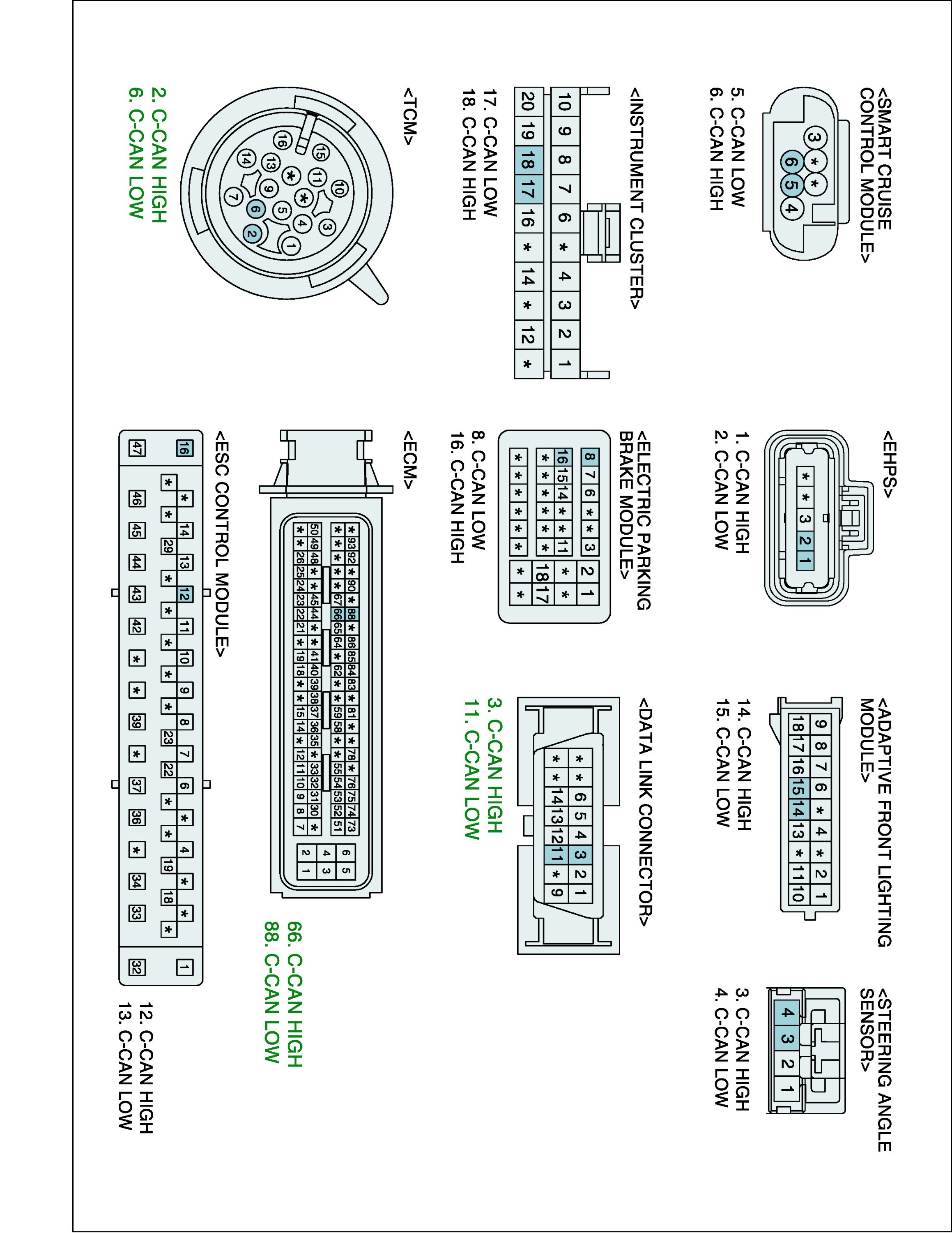 2. Check resistance between CAN-HIGH terminal of ECM harness Connector and CAN-HIGH terminal of TCM harness connector.