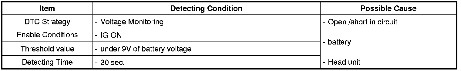 This code is set when the supplied power of Head unit is under 9 V.