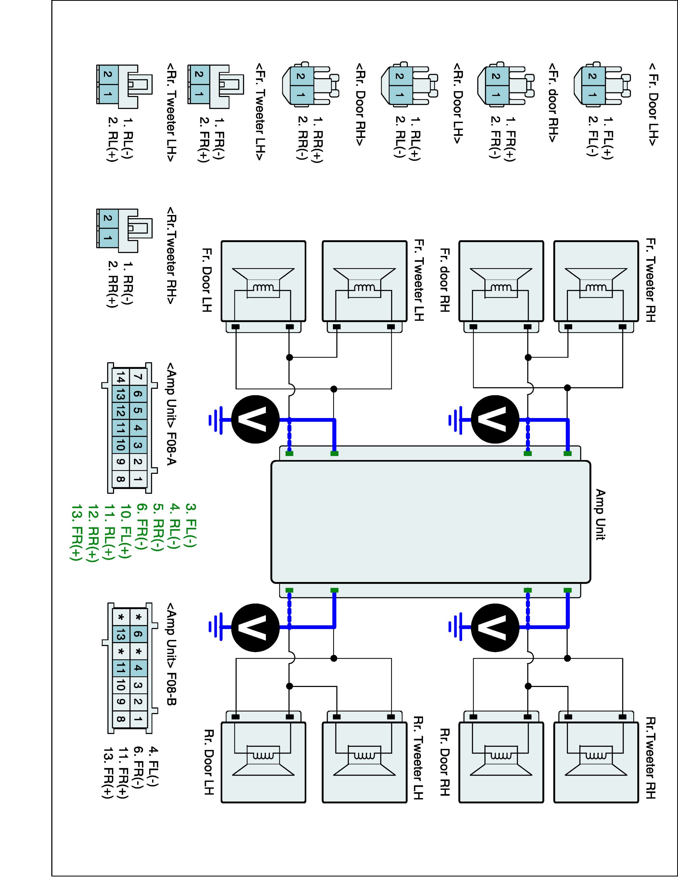 5. Measure waveform between terminal (+) of rear (RH, LH) door of Amplifier and chassis ground.