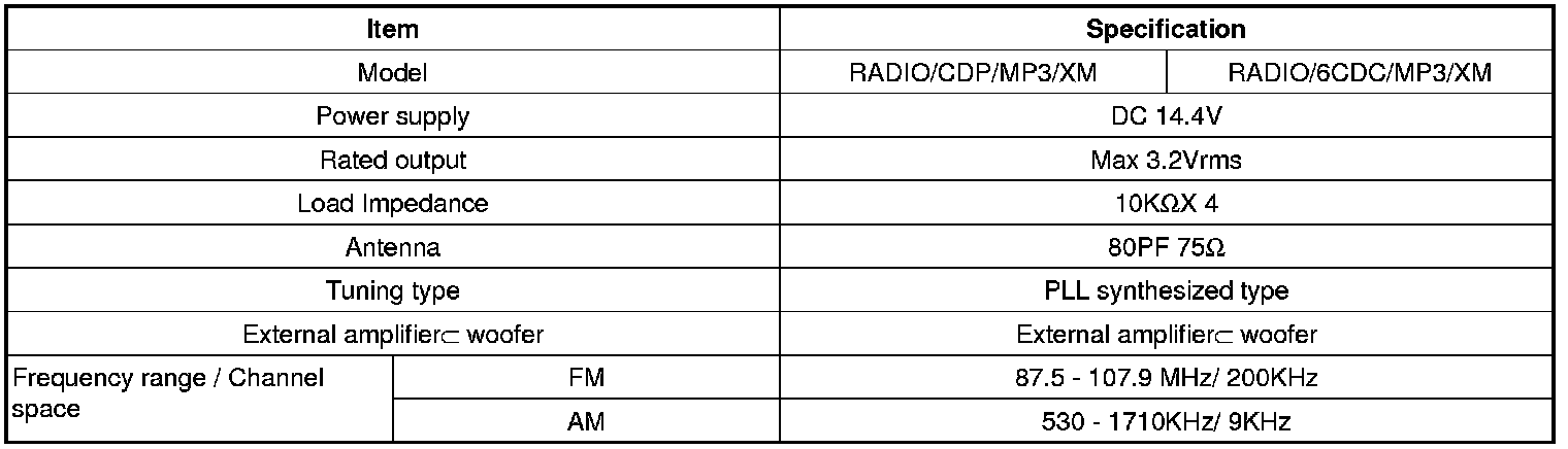 Radio/Stereo: Specifications