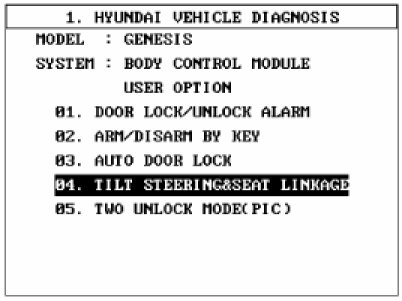 4. Select the "Tilt steering & seat linkage".