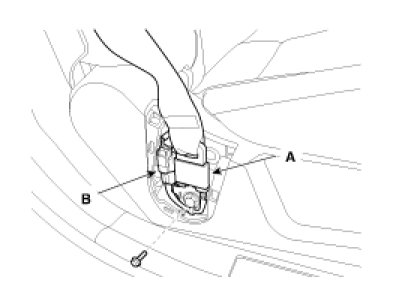2. After loosening the seat belt lower anchor mounting bolt, remove the seat belt lower anchor (A).