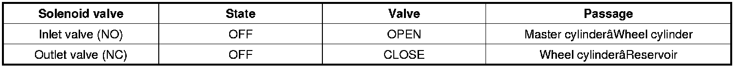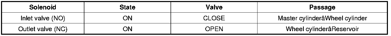 When a wheel (or several) tends to lock the inlet valve IV is first closed to avoid a further increase in brake pressure. The outlet valve OV remains closed: the brake pressure is kept constant.