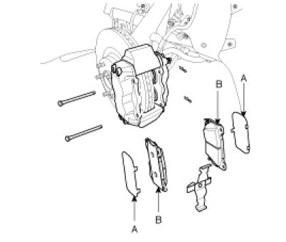 3. Remove the pad shim(A) and pad(B).