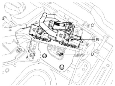 3. Disconnect the ECM connector (A) and TCM connector (B). And then take the protector of control harness off.