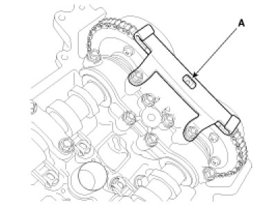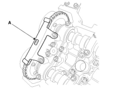 - Align the chain installation mark (A) of the crankshaft sprocket and the timing mark (A) of the chain link, and then install the chain.