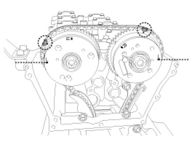 When reassembling the timing chain, make sure all of the chain installation mark of the sprocket and the timing marked chain links are aligned.