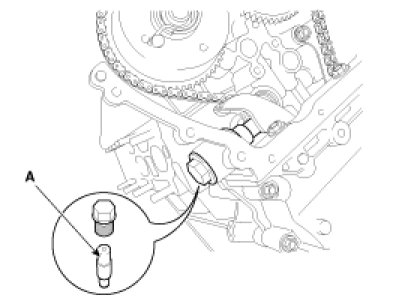 3. Install the timing chain tensioner with the oil hole facing the plug bolt.