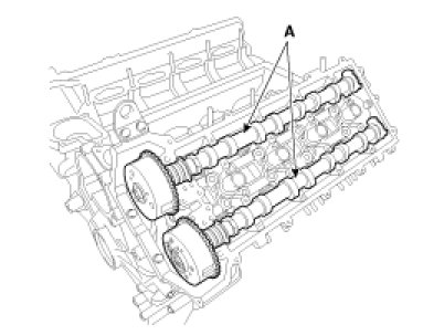 5. Install the LH/RH CVVT and camshaft assembly (A).