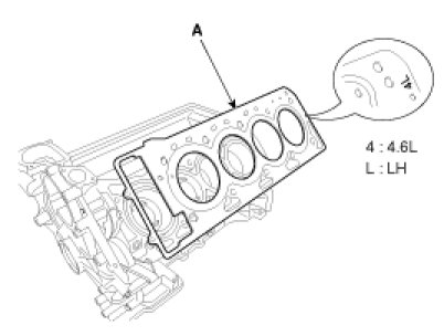 1. Install the cylinder head gasket (A).