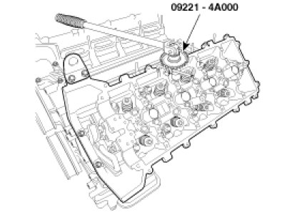 (2) Tighten the plug bolt with the specified torque while pressing the timing chain on the LH intake CVVT.