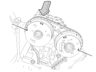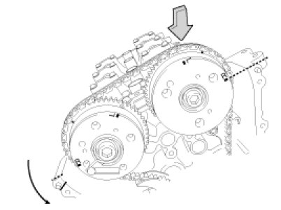 In case of marking the timing chain links corresponding to the chain installation marks on the sprocket with an identification for on-vehicle repair (for cylinder head assembly, timing chain tensioner, CVVT, camshaft, HLA or etc.), align all of the chain installation mark of the sprocket and the timing marked chain links for reassembly.