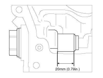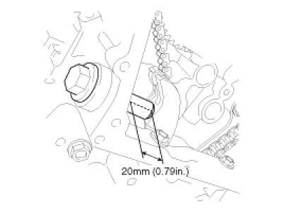 C. To check the tension of the timing chain tensioner, push the timing chain tensioner arm outward strongly. The distance between the cylinder head surface and end of tensioner plunger should be about 20mm (0.79inch).