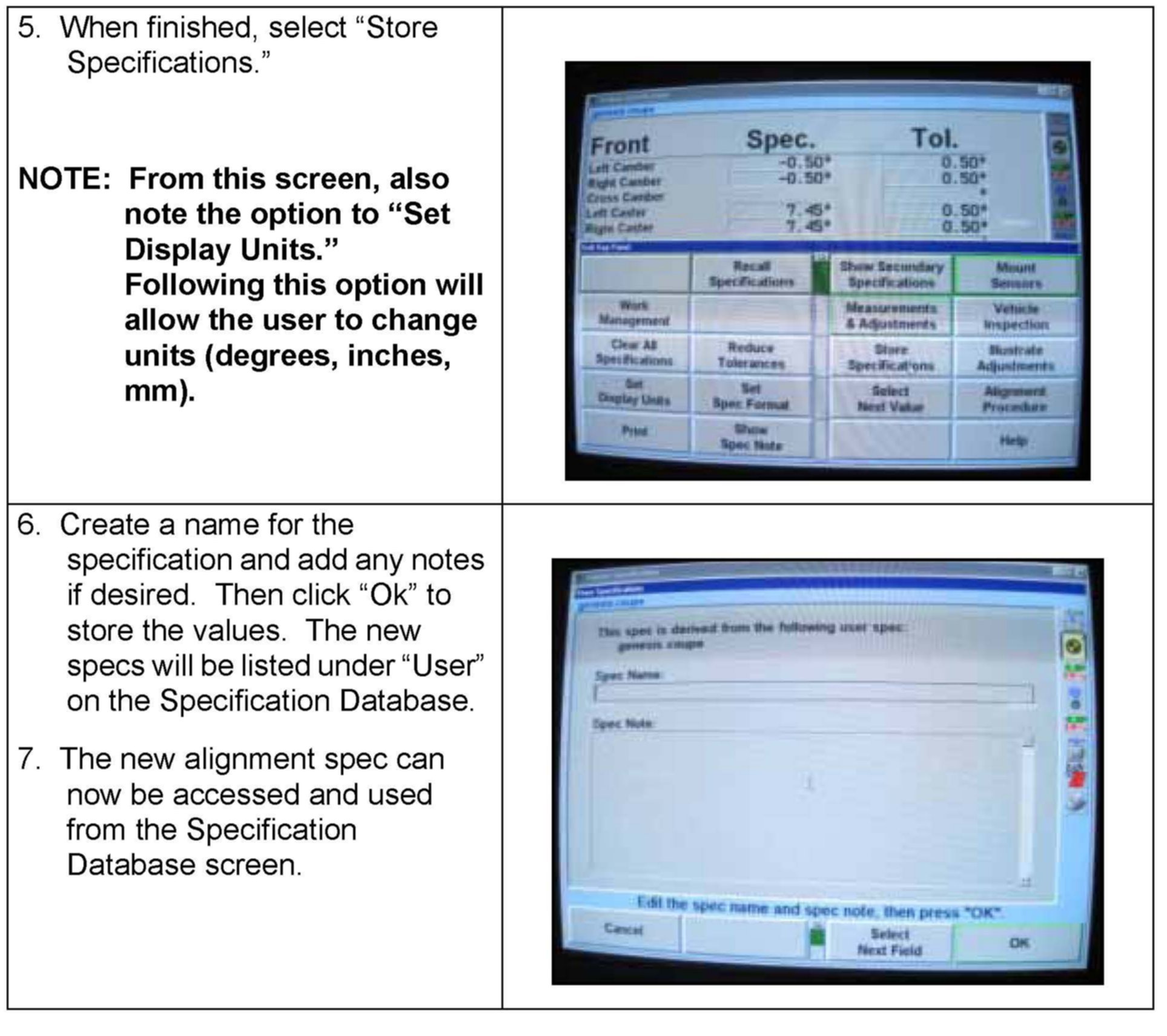 HOW TO INPUT ALIGNMENT SPECIFICATIONS