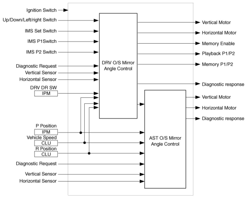 The Outside Mirror angle control function and IMS function controls the following devices.