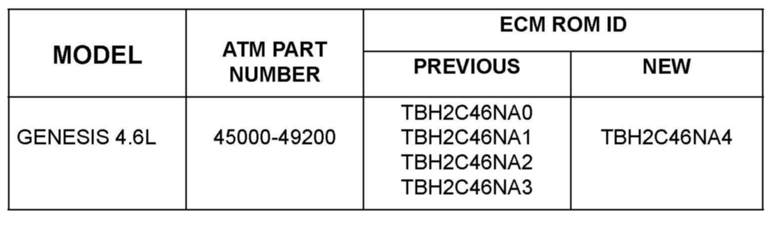Model: 2009~Genesis Sedan 4.6L V8 vehicles with automatic transmission