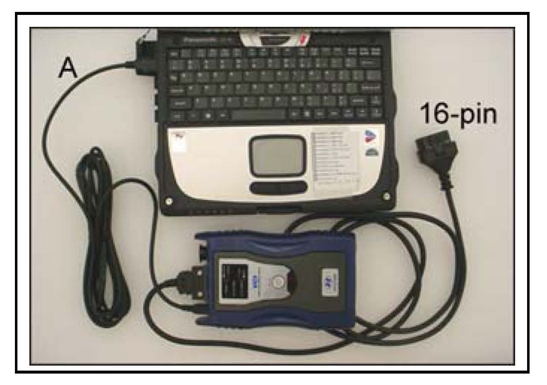 1. Connect the USB cable (A) between the GDS and the VCI.