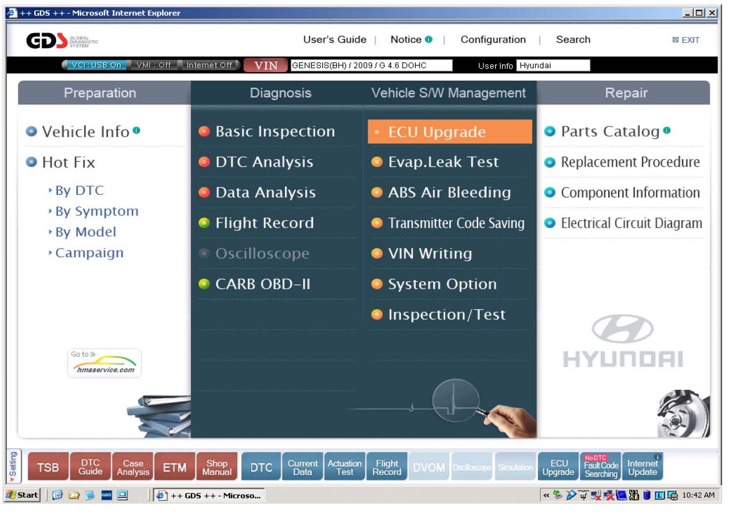 2. At the GDS main screen, select ECU Upgrade.