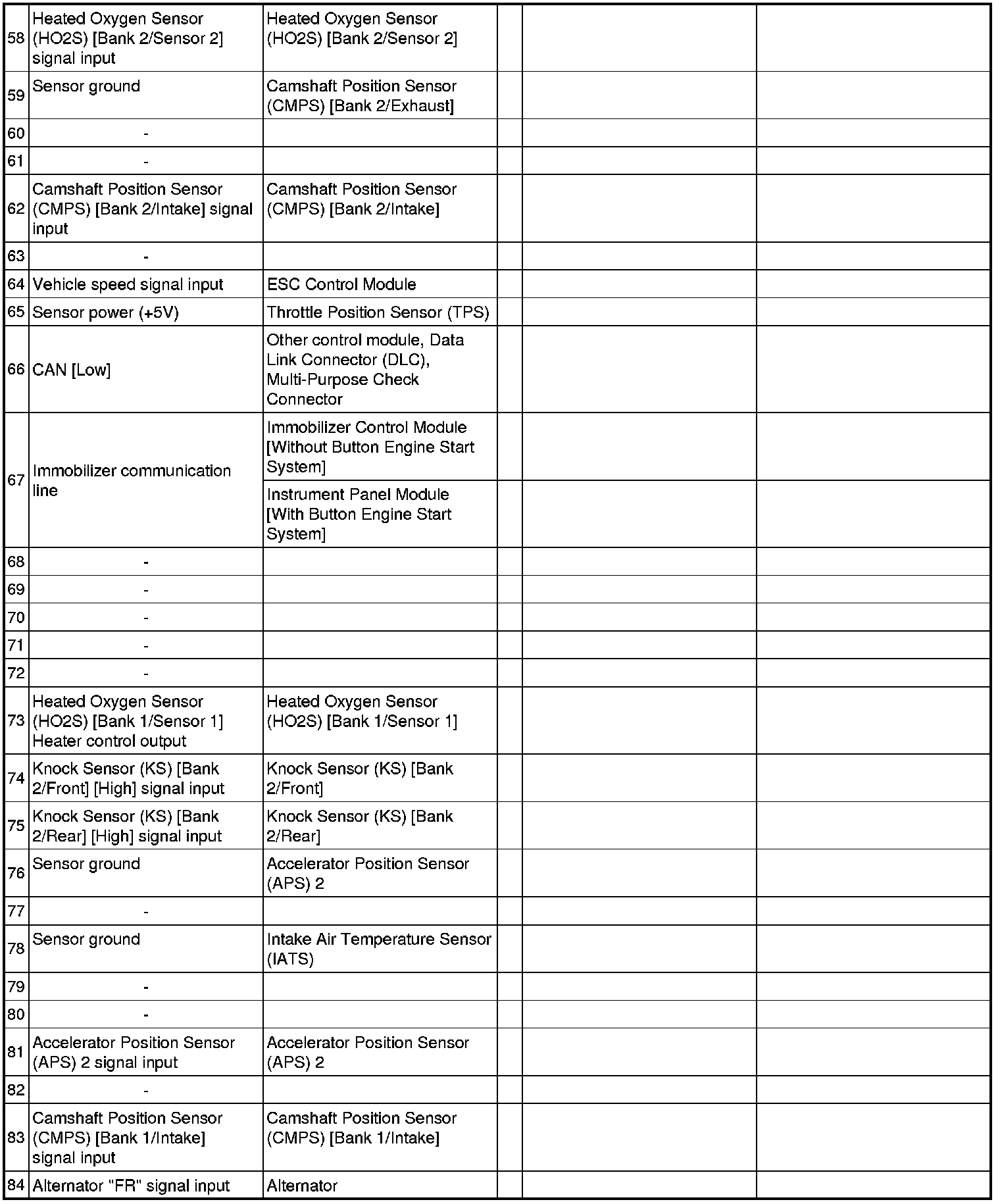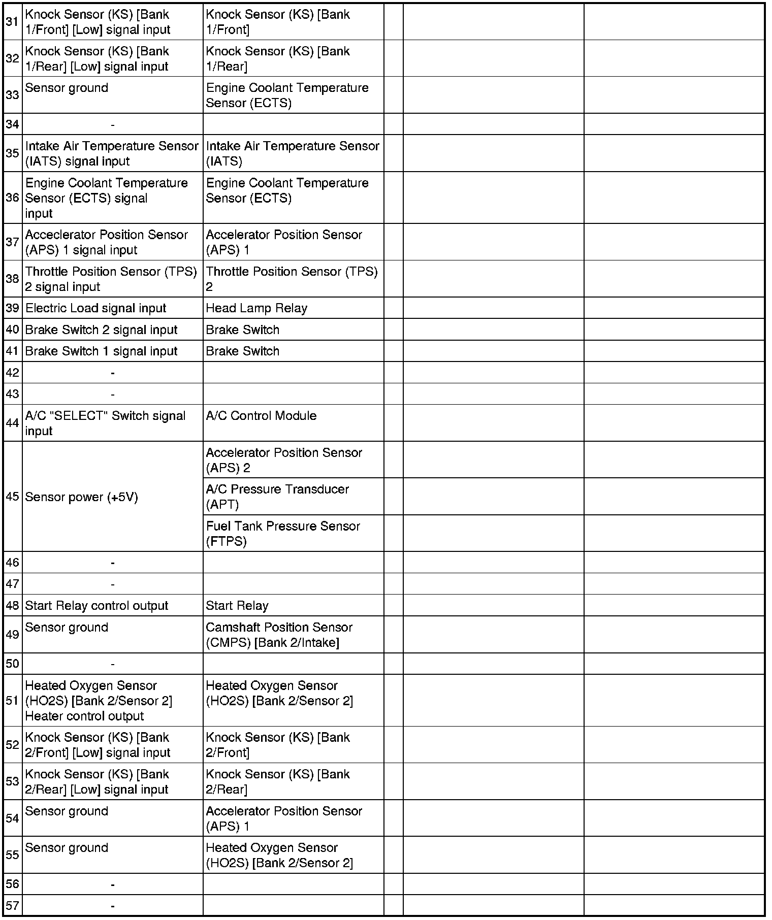 ECM Terminal And Input / Output signal
