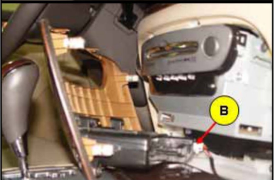 3. Disconnect the wiring connector (B) and remove the center fascia panel from the crash pad.