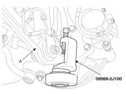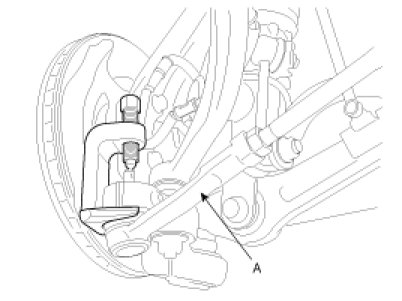 5. Disconnect the lateral arm (A) with the front knuckle using a SST (09568-2J100).