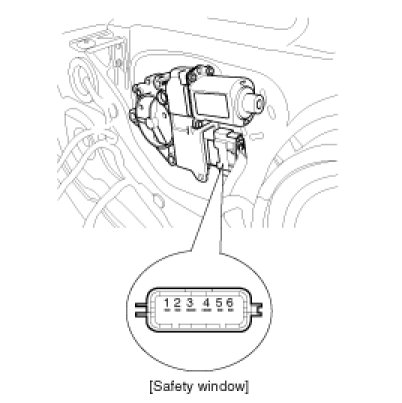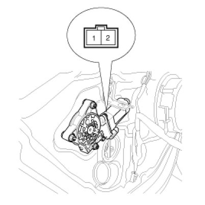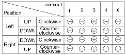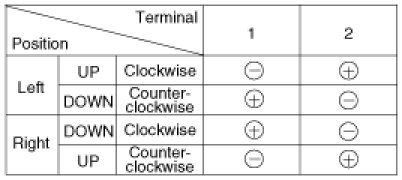 4. Connect the motor terminals directly to battery voltage (12V) and check that the motor operates smoothly. Next, reverse the polarity and check that the motor operates smoothly in the reverse direction. If the operation is abnormal, replace the motor.