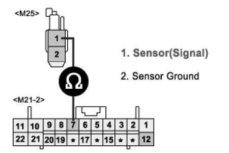 3. Measure resistance between terminal "2" of water temp. sensor and chassis ground