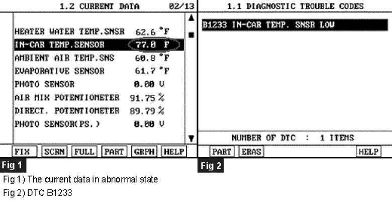 4. Are the DTC B1233 present and is parameter of "INCAR TEMP.SENSOR" fixed?