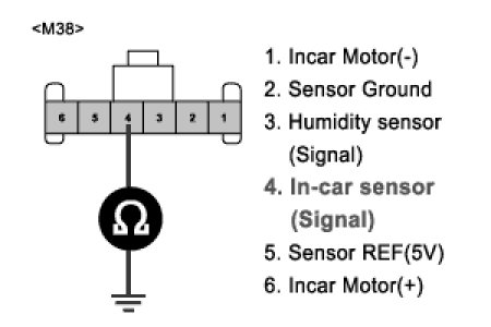 3. Measure resistance between terminal "4" of incar sensor and chassis ground