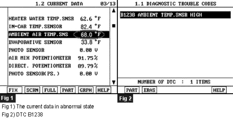 4. Are the DTC B1238 present and is parameter of "AMBIENT TEMP.SENSOR" fixed?