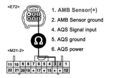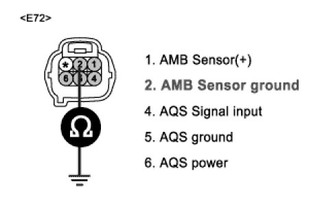 3. Measure resistance between terminal "2" of ambient temp.sensor and chassis ground.