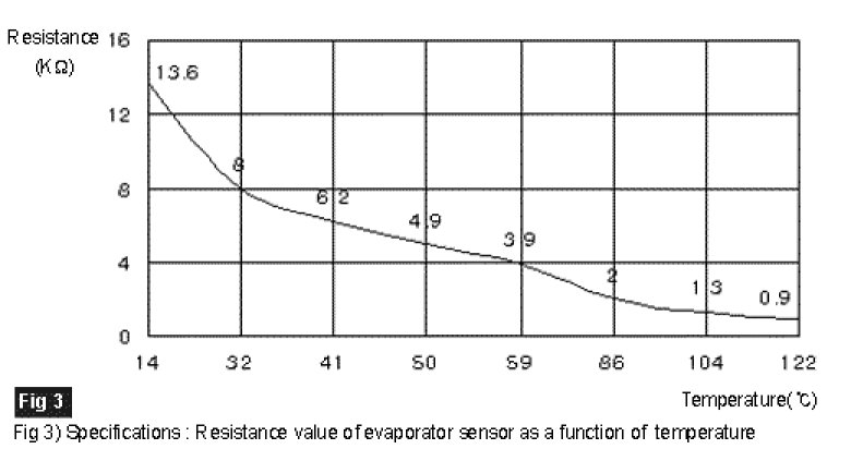 3. Measure resistance between terminal "1" and "2" of evaporator sensor