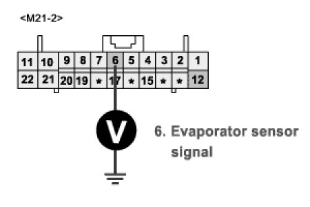1) Substitute with a known-good evaporator sensor and check for proper operation. If the problem is corrected, replace evaporator sensor and then go to "Verification of Vehicle Repair" procedure.