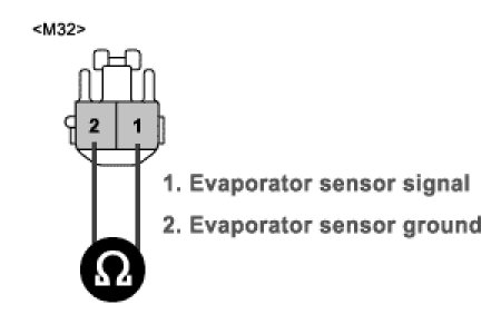 3. Measure resistance between terminal "1" and "2" of evaporator sensor