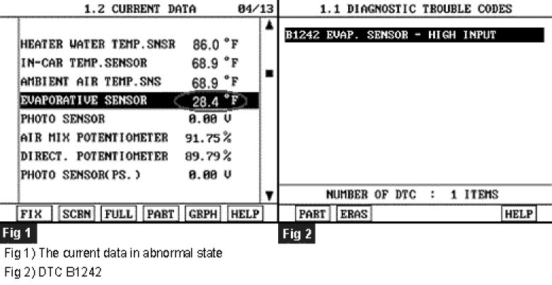 Air Conditioner - B1242 Evaporator Sensor Open (HIGH) - Monitor Scantool Data