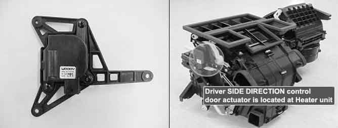 The mode control actuator mounted on heater unit adjusts position of mode door by operating Direction Motor based on signal of A/C control unit. Pressing mode select switch makes the mode control actuator shift in order of vent-> B/L -> floor -> mix.