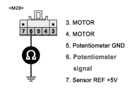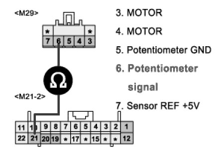 3. Measure resistance between terminal "6 of DR Direction Potentiometer and terminal "21" of A/C control unit.