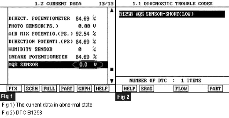 4. Are the DTC B1258 present and is parameter of " AQS sensor " fixed?