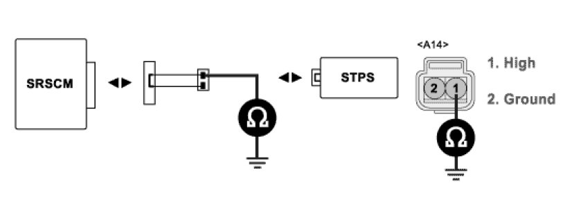 4. Measure resistance between terminal "1" of the STPS harness connector and chassis ground.