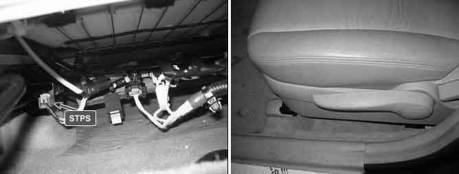 STPS located underneath passenger seat detects horizontal position of passenger seat and delivers it to SRSCM. Signal of STPS is the one of major parameters that determine the way dual output type airbag deploys.