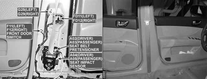 Side Impact Sensor (SIS) is located in both side of center pillar detects broad collision. When SIS delivers collision signal to SRSCM, SRSCM checks if safing sensor located in SRSCM detects collusion. and if both SIS and safing sensor detects collision simultaneously, SRSCM operates side air bag.