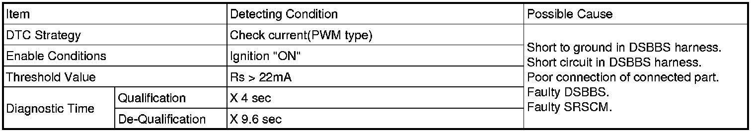The SRSCM sets DTC B1512 if there is a short or short to ground in DSBBS harness.