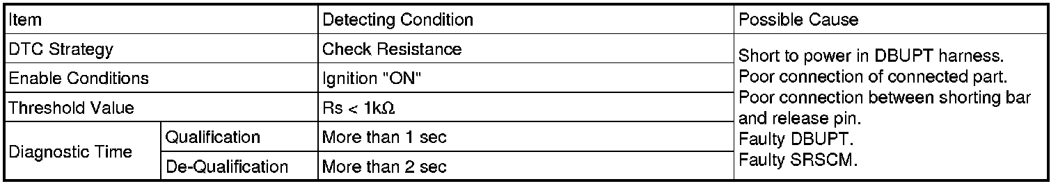The SRSCM sets DTC B1704 if there is a short to power in DBUPT harness.