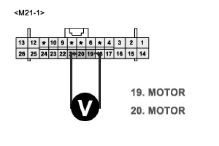 3. Measure voltage between terminal "19" and "20" of A/C Control Unit while operating the mode switch.