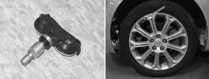 When 4 sensors have been learned as road wheels, it shall not be possible to learn new road wheel sensors on the same Ignition cycle. In normal mode low line, tire pressure and temperature shall be transmitted every 3 minutes 20s nominally independent of vehicle operation. Monitoring shall be every 20s. If sensor detects rapid deflation, then RF messages will be transmitted every 4s for 1 minute duration. Communication from wheel sensors shall be via RF at a frequency of 315 MHz, 5 kBaud. Tire pressure measurement tolerance shall be ±7 kPa from 32 to 122°F (0 to 50°C) and ±17.5 kPa from -40 to 248°F (-40 to 120°C) with a range of 100 to 450 kPa. Tire temperature measurement tolerance shall be ±37.4°F (±3°C) from -4 to 158°F (-20 to 70°C) and to ±41°F (±5°C) from -40 to 248°F (-40 to 120°C).