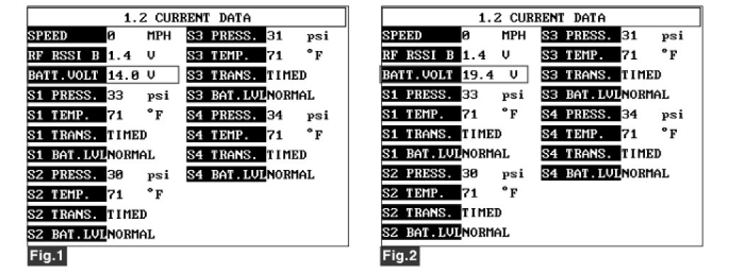 6. Monitor the parameter of BATT. VOLT on the 'TPMS exciter' or scantool.